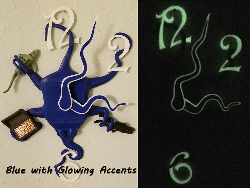 The glowing effect only lasts about ten minutes. The clock may lose its phosphorescent qualities over time.